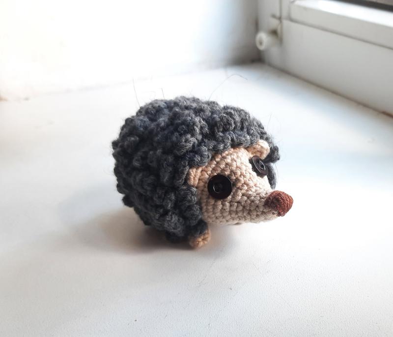 Милий в'язаний їжачок ручної роботи. Зв'язаний з м'якої пряжі сірого та бежевого кольорів. Оченята - ґудзики, носик - вишитий. М'який та приємний на дотик. Стане чудовим подарунком для дітей, або ж оригінальною прикрасою інтер'єру. Розмір: приблизно 10 см в довжину. Рекомендується ручне прання в теплій воді. Матеріали: пряжа- вовна, бавовна/акрил; наповнювач- холофайбер.