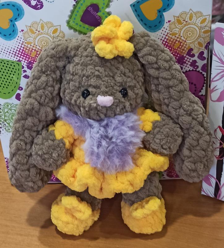 Зайка в туфельках і шарфиці, граничка з плюшевоi пряжі, дуже м'якенька, гiпоалергенна, гарненька. Висота без вушок-18 см Пiд замовлення колiр на вибiр. Зв'язано з любов'ю з плюшевоi пряжi виробництва Туреччини, наповнювач холофайбер. БІЛЬШЕ НАШИХ ТОВАРІВ ЗА ПОСИЛАННЯМ http://clothes-and-others.***********************