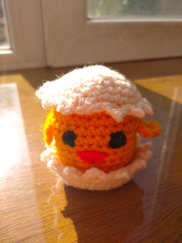 М'яка в'язана іграшка "курчатко в шкаралупці". Матеріал - акрил. Наповнення - синтепон.