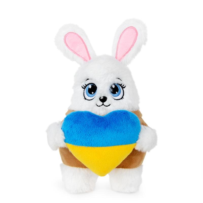 Плюшевая игрушка Зайчонок Мурелька - это милое создание с длинными ушами и мягким белым мехом, одетое в коричневый костюм. У зайчонка также черный маленький нос и большие голубые глаза, которые кажутся невероятно милыми и приветливыми. Эта плюшевая игрушка передает безграничную любовь к Украине. В лапах зайчонка держит желто-голубое сердце, что является олицетворением преданности и благодарности своей стране. Размер: 17 см