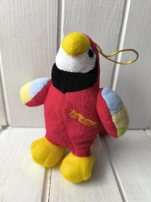 Яркий попугай. Не большого размера. Есть петля, за которую можно подвесить. Друг для маленького пирата