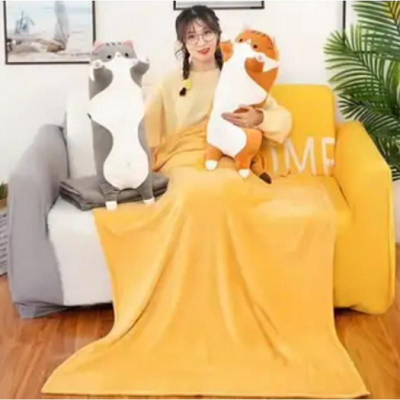 М'яка іграшка подушка-обіймашка "котик" 60 см із пледом