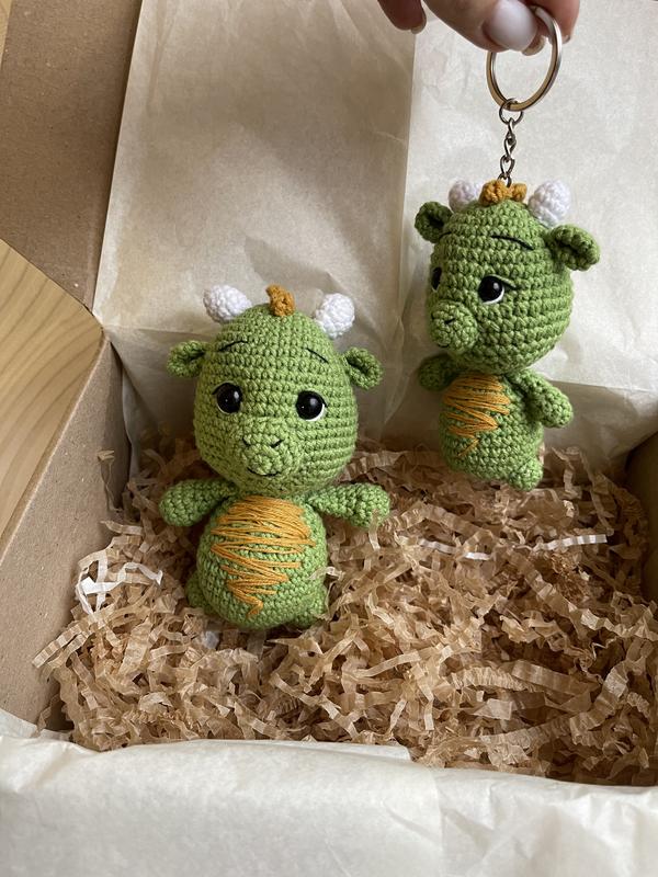 Вʼязані іграшки , набір (іграшка в долоньку+ брелок) , дракон, динозавр, подарунок