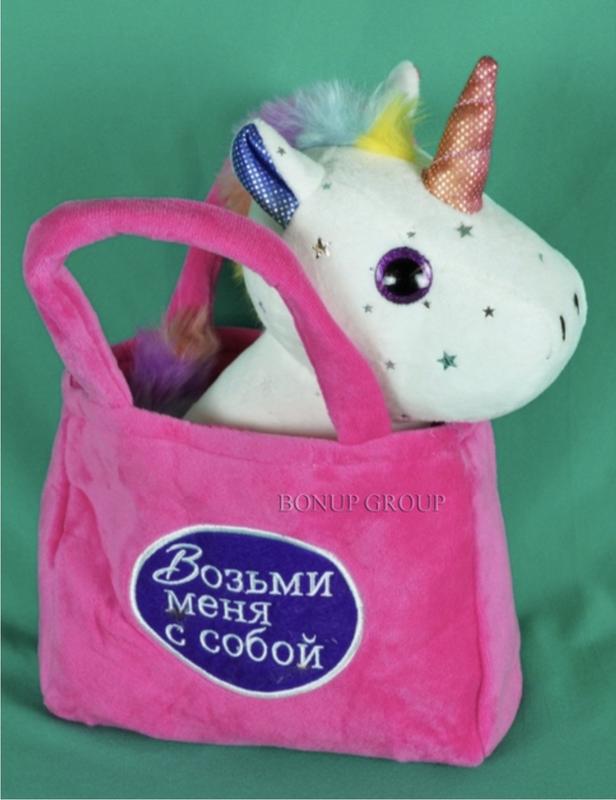 Мʼяка іграшка єдинорог в сумочці «візьми мене з собою» глазастик. единорожка в сумочке.