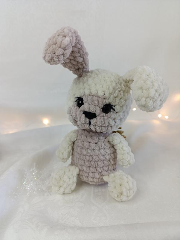 Іграшка з м'якенької плюшевої пряжі. Висота іграшки 30 см , коли сидить. Очі на безпечному кріпленні, всі деталі міцно пришиті. Морквинка окрема, не пришита.