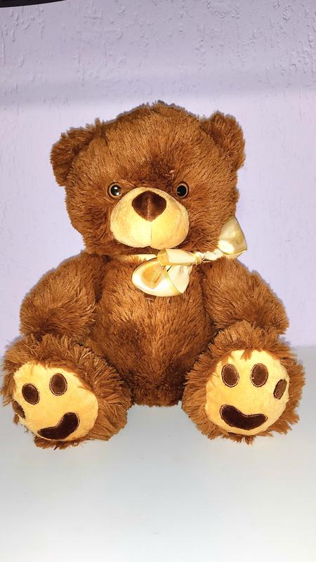 Плюшевый милый мишка с атласным бантиком на шее. Отличный подарок, как для ребенка, так и для взрослого, независимо от пола. Цвет - коричневый. Высота 30 см. Ширина 20 см. Длина 25 см. Украинская фабрика " Копица". Новый.