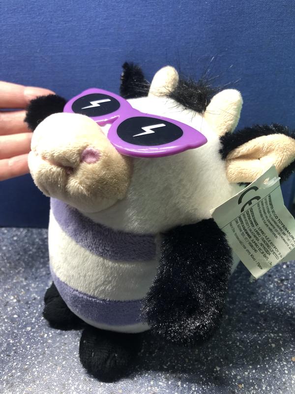 Игрушка-талисман! Редкий, креативный новый БЫЧЁК, привезён из Греции - ценник в евро специально подорван: планировался на подарок, но не случилось, ( стоил 15 евро)-цена снижена! Подойдёт для любого возраста: от года и до ста, т. к выглядит универсальным! Славный малый! Крутой! С чубчиком! Заставит улыбнуться! Белоснежная основа материала; сделан очень качественно, ( европейский контроль качества и безопасности!). ( Очки надёжно прикреплены, выполнены из прочного пластика-на нём еле уловимые микроцарапинки, это-если придираться). Овальной формы; высота 19, ширина 13/17. Прекрасный подарок: не трётся-не мнётся-не бьётся! Всем оригинальных, креативных подарков, или пополнений коллекций! ( Наложка есть, с предоплатой). НА ЗАМЕТКУ: наряду с пластмассовыми и металлическими «холодными» игрушками, мягкие и пушистые изделия помогают детям (и взрослым) развивать человечность, любовь к животным. Они также дарят чувство защищенности и тепла - часто, в момент грусти, мы крепко прижимаем к себе мягкую игрушку, рассказывая о своих переживаниях, тревогах...и она будет надёжно хранить наше сокровенное))