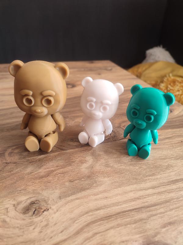 Мішка який змінює настрій, як ми всі... Виконаний з пластику PLA 3d друк.Можливо виконати як брелок. Доступні кольори: зелений; жовтий; білий; червоний; чорний; капуччино( беж); зелено- синій двох кольоровий.Мішка має два обличчя яке можно прикрутити і змінити не знімаючи голови) Також рухомі ручки та ніжки.Є два розміри.Ціна буде різна.