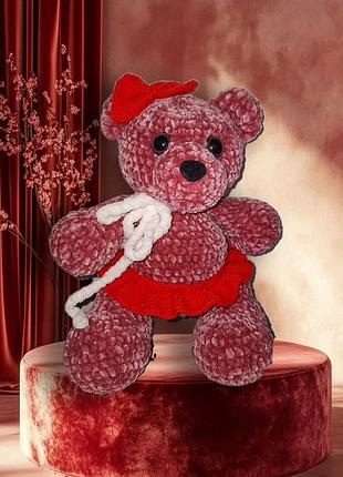 В'язана іграшка ведмедик. Виготовлена з гіпоалергенного матеріалу, дуууже м'якенький на дотик ,кругленький. Зріст — 26 см Ціна — 400 грн Готовий до відправки