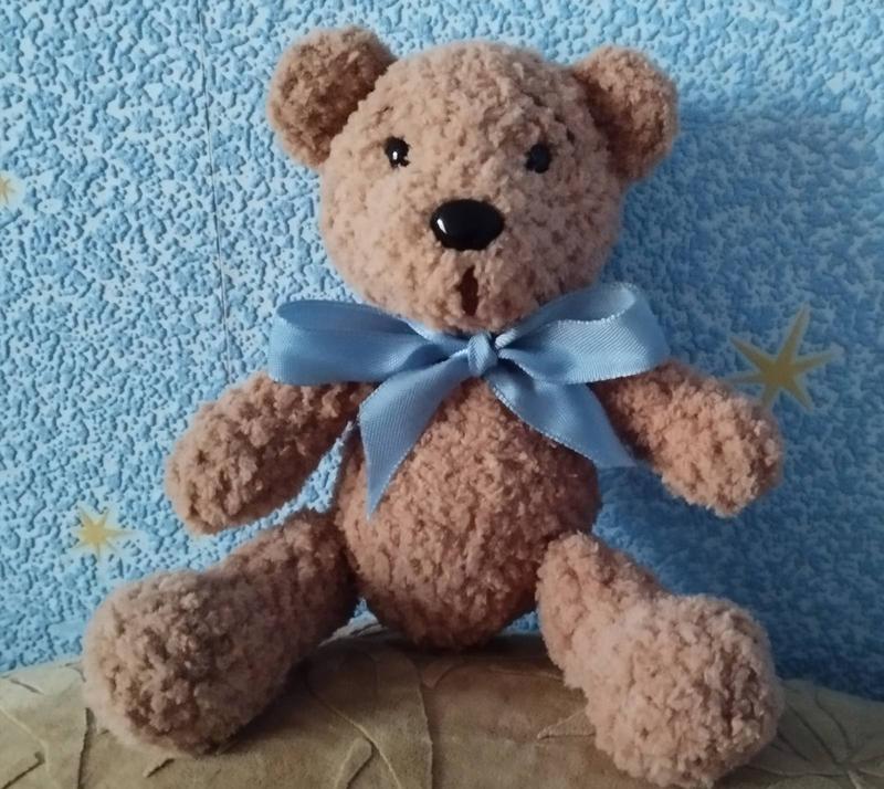 Отличный подарок на любой возраст! Хороший мишка подарит тепло и радость Вам и Вашим деткам. Очень мягкий на ощупь (нитка – ализе софти), очень любующийся детками. Ручная работа. Нить – ализе софти. Наполнитель – холлофайбер. Цельно-связанный, поэтому безопасен для самых молодых. Рост – 21 см.