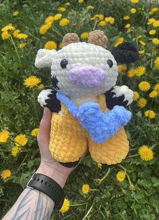 Вʼязана іграшка виконана з плюшевої пряжі. Очі на безпечному кріпленні. Сумочка знімається. Розмір: 20 см