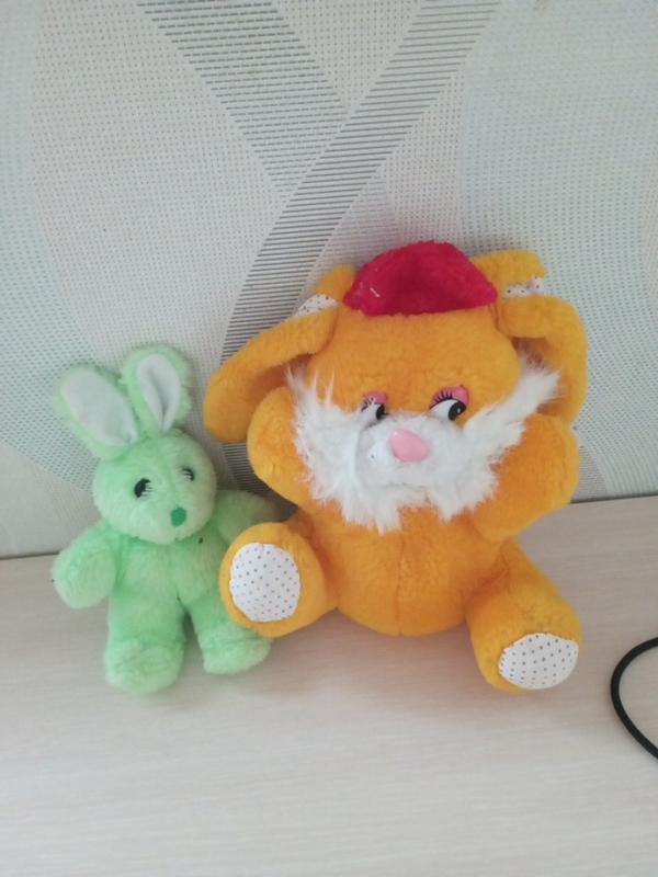 Дитяча іграшки, два кролика, один оранжевий другий світло-зелений, якість (нова).