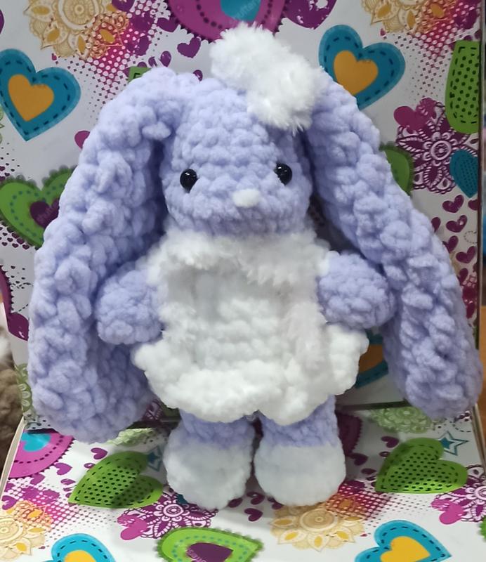 Зайка дiвчинка з довгими вушками, iграшка з плюшевоi пряжi, дуже м'якенька, гiпоалергенна,...