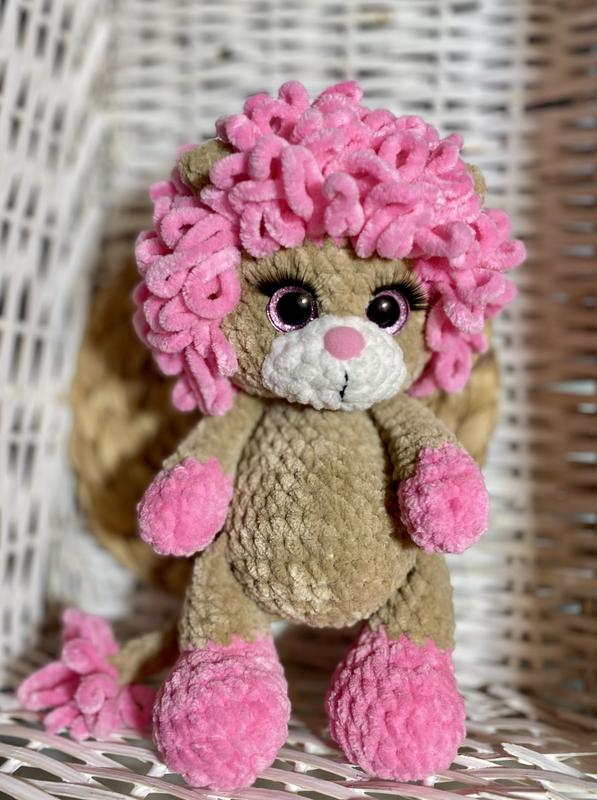 Левенятко може бути в кольорі як для хлопчика так і дівчинки. Підберемо кольори по бажанню. Виконаний з плюшу, наповнювач холлофайбер спеціальний для дитячих виробів.