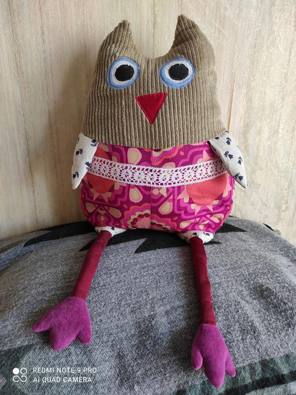 Іграшка -подушка Совеня Виготовлена з натуральних тканин. Розмір 42 см ( без ніжок), довжина ніжок- 30 см. НОВЕ. Handmade/ ВІДПРАВКА УКРПОШТОЮ.