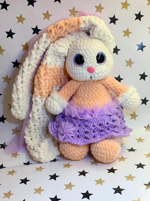 Іграшка ручної роботи, виготовлена з плюшевої гіпоалергенноі пряжі, яка є безпечною для діток від народження Вся фурнітура безпечна, зафіксована на заглушки з внутрішньої сторони іграшки (очі/носик), бантики на вушках пришивні Наповнювач - холлофайбер 1-го гатунку Іграшка нова, виготовлена від щирого українського серця для вас та вашої малечі 💛 Можливий повтор у іншому кольорі, під замовлення