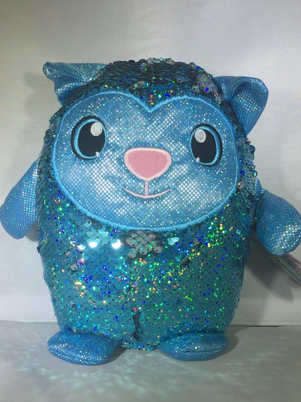 М'яка іграшка Shimmeez Lainey the Lamb. з двосторонніми блискітками, які змінюють колір, якщо провести по них рукою. Модель Lainey the Lamb — це ягня синього кольору з одного боку і серебристого з іншого. Розмір 23х20 см. Стан дуже хороший.