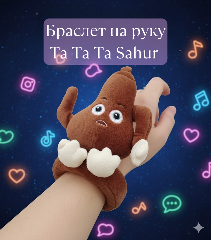 Трендовий Браслет, що Розвеселить Кожного! Зверніть увагу: це не просто м'яка іграшка, це БРАСЛЕТ НА РУКУ у вигляді культового персонажа Та та та Сахур (Ta Ta Ta Sahur), що став вірусним завдяки треку "Ta Ta Ta Sahur"! Цей м'який браслет ідеально підходить для фанатів Brainrot та всіх, хто хоче додати абсурдного гумору у свій образ. Він виконаний з м'якого плюшу, має виразні очі та форму, що дозволяє зручно обгорнути його навколо зап'ястя та зафіксувати як стильний аксесуар. З розмірами приблизно 16 см, браслет комфортно сидить на руці. Ta Ta Ta Sahur – це візуальний код, який покаже, що ви завжди в центрі найгарячіших інтернет-трендів! Основні характеристики (БРАСЛЕТ НА РУКУ): Назва: М'який БРАСЛЕТ Та та та Сахур Оригінальна назва: Ta Ta Ta Sahur (Italian Brainrot) Тип товару: БРАСЛЕТ / Аксесуар на руку Довжина: Приблизно 16 см (для носіння на зап'ясті) Матеріал: Якісний м'який плюш Колір: Коричневий та Білий Тематика: Brainrot / Вірусні меми TikTok Особливості: Спеціальна конструкція, що дозволяє носити фігурку як браслет. Переваги БРАСЛЕТА Ta Ta Ta Sahur: Аксесуар №1: Трендовий браслет, який є must-have для фанатів TikTok. Комфортне Носіння: М'яка плюшева конструкція зручно фіксується на руці. Універсальність: Підходить для носіння на руці Подарунок: Найкращий сюрприз для підлітка, який цінує мем-культуру. Станьте зіркою мемів з ексклюзивним БРАСЛЕТОМ Та та та Сахур!
