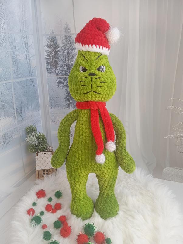 мягкая игрушка Гринч ручная работа, связанная крючком из плюшевой гипоаллергенной пряжи, наполнитель холлофайбер, надежное крепление деталей. Ручки сгибаются. Высота 30 см. Стоит с опорой.
