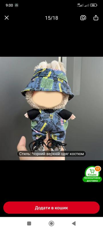 Новий одяг на м'яку іграшку Лабуба, на розмір іграшки приблизно 17 см.