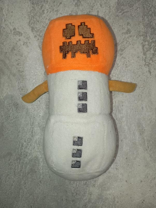 Сніговик Minecraft Вікова група-без обмежень Висота-18 см Ширина-7 см М'яка іграшка у формі моба із всесвіту "Майнкрафт". Іграшка виготовлена з плюшу із синтепоновим наповнювачем, м'яка та приємна на дотик. Буде прекрасним подарунком фанату гри. В гарному стані,дефект-на останньому фото