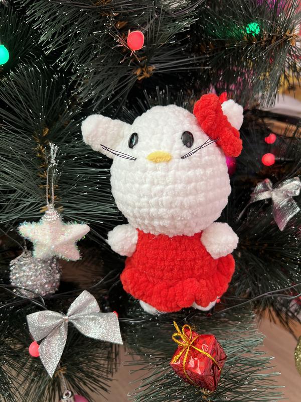 Іграшка hello kitty хеллоу кітті ручної роботи вʼязана мʼяка іграшка подарунок на різдво т...