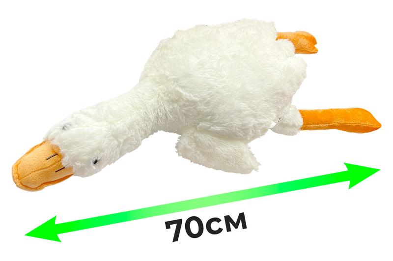 М’яка іграшка «Гусь обнімусь» стане улюбленим другом для дітей та прикрасою інтер’єру. Виготовлена з високоякісного плюшу, наповнена безпечним гіпоалергенним матеріалом, вона м’яка на дотик і стійка до частого використання. Довжина 70 см