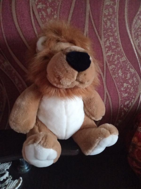 лев гарної якості.плюш відмінний.м'якенький.33 см .сидячий.