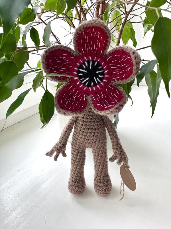 Демогоргон звʼязаний гачком в техніці амігурумі. Персонаж серіалу «Дивні дива». Висота 20 см. Є інші кольори.