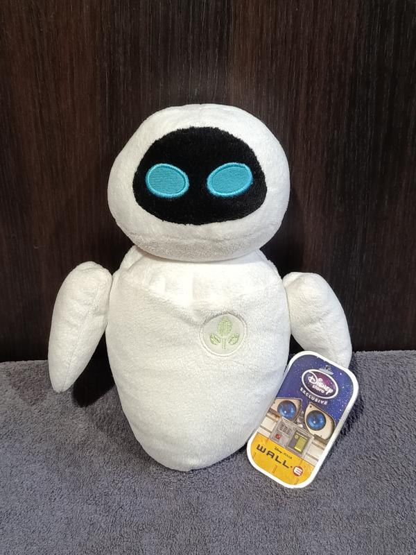 Робот Єва з мв Wall E, м'яка, стан ближче до ідеалу, бирка є, всередині в грудях є механізм із озвучуванням, там сталі батарейки, вимагають заміни (потрібно на спинці розшити та дістати механізм)