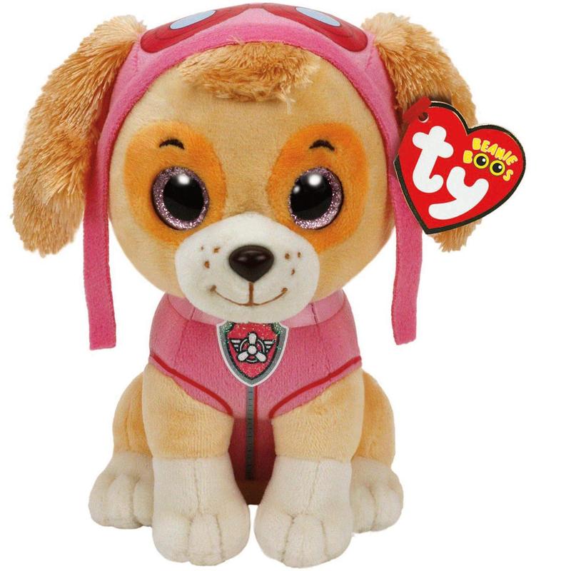 Іграшка Скай Щенячий патруль коричневого кольору з рожевими оченятами, рожевими льотними окулярами на голові та в одязі такого ж кольору. Висота іграшки 16 см, стійко сидить на 4-х лапках. Іграшка Щенячий Патруль TY виготовлена з м'якої, приємної на дотик плюшевої тканини. Усередині має м'який та щільний наповнювач холлофайбер. Очі іграшки виконані із пластику. Без дрібних деталей.