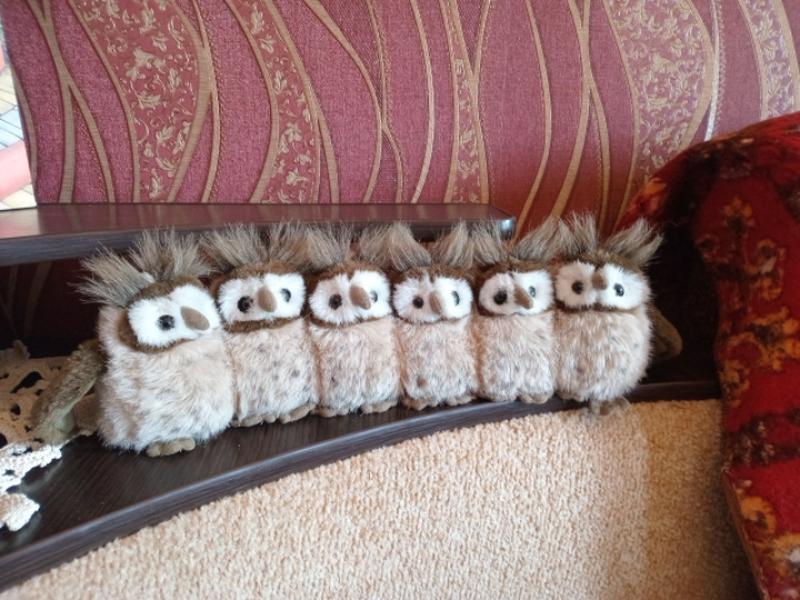 Совенята.игрушка тяжеловата.набитая шариками.стопер.глазаки все в хорошем состоянии.41 см длина.бирки отсутствуют.
