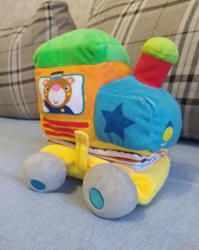 Состояние очень хорошее. И игрушка и книга. Липучка очень хорошо держит. В трубе спрятана пищалка. Есть еще игрушки. Смотрите объявления. +20грн.до стоимости упаковки и % шкафа.