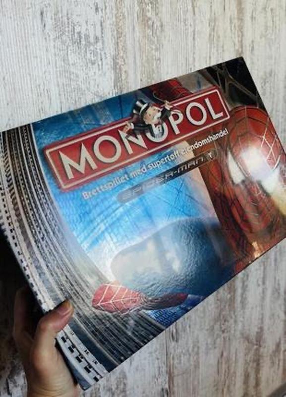 Нам подарували але дитина не грає в настільні ігри. Увага! Гра на норвезькій мові!!! Настільна гра Hasbro Monopoly Spiderman. Улюблена гра про торгівлю нерухомістю з Людиною-павуком та її друзями у головній ролі. Стати власником найбільшої кількості грошей і керуйте всім цим. Поставляється з картами документів про право власності, картами випадкових та загальних скриньок, грошима Монополії та підносом банкіра, 2 кубиками, 6 жетонами, 32 квартирами та 12 хмарочосами. Від 2 до 6 гравців. Для віку 8 років.