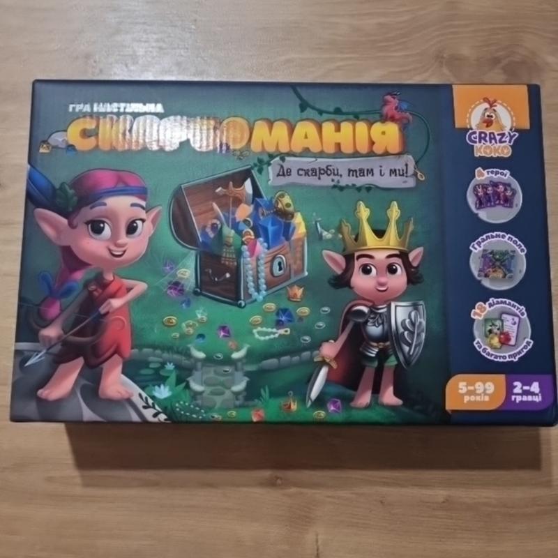 Нова, можна на подарунок! Вирушайте разом із друзями на пошуки скарбів! Попереду на вас чекають захоплюючі пригоди в компанії лісових ельфів. Але спочатку зберіть все необхідне екіпірування. Мета гри – зібрати якнайбільше скарбів. Для цього кидайте з друзями по черзі кубик та пересувайтеся ігровим полем. Виконуйте всі необхідні дії, щоб потрапити до печери та забрати скарби. У процесі гри збирайте екіпірування та чарівні зілля. Вони допоможуть вам у найвідповідальніший момент! Настільна гра додасть веселощів будь-якому дозвіллі! Комплектація: ігрове поле, 74 деталі, 18 діамантів, ігровий кубик, 4 пластикові підставки, інструкція.