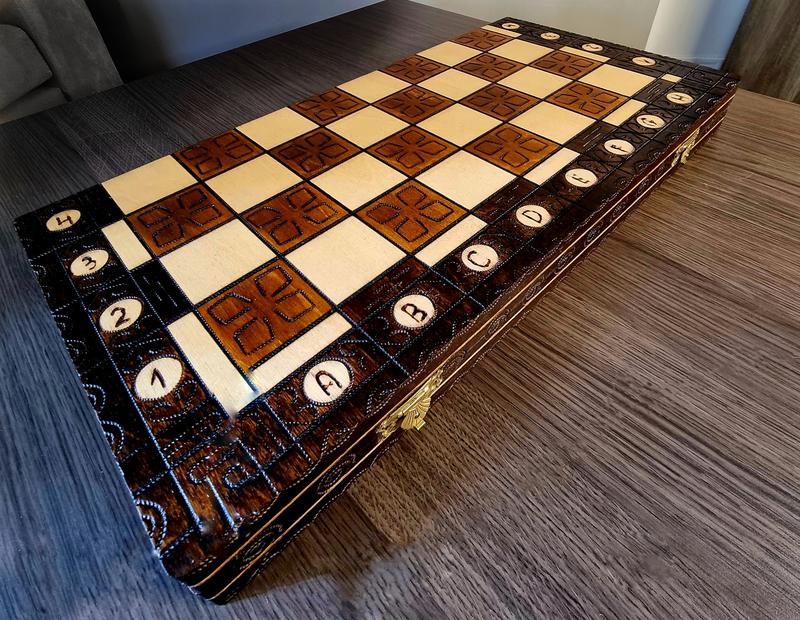 Крафтові дерев'яні шахи. Розміри: 50,5x25x5,5 см