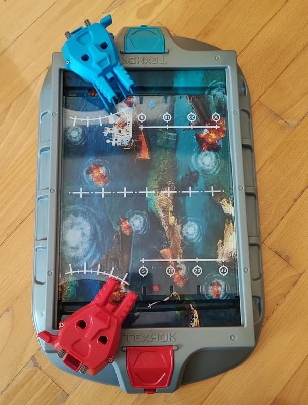 Гра настільна ТехноК Морські баталії, морський бій. Практично нова. Набір «Морські баталії» – це захоплююча та динамічна настільна гра, що представляє сучасний варіант «Морського бою». Вона складається із пластикового поля, гармат, прицілу і металевих снарядів у вигляді кульок. Правила цієї гри дуже прості (необхідно збити корабель супротивника за допомогою кульки-снаряда). Граючи в такий модернізований морський бій, дитина отримує масу позитивних емоцій, а також розвиває спритність, влучність, окомір, орієнтацію у просторі, моторні навички та координацію рухів. Підходить для дітей від 5 років. Іграшка виготовлена з високоякісного матеріалу та безпечна у використанні. Метал і пластик. Дуже прості правила гри. Ідеальний стан гри, у використанні була кілька разів. Настільний морський бій з гарматами, прицілом і металевими кульками-снарядами, все, що потрібно – це потрапити металевою кулькою в корабель противника. 15 залізних кульок, 5 червоних кораблів, 5 синіх кораблів, ігрове поле. Розміри – 55*33*9.