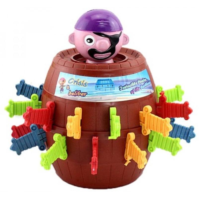 Pirates Barrels - веселая коллективная игра для детей от 4 лет, где могут поучаствовать 2 или 4 ребенка. Игра развивает ловкость, внимание и координацию движений. Настоящая бочка веселья! Игра не только порадует и развеселит Вас, но и поможет провести незабываемый вечер в кругу семьи. Правила игры: Участники поочередно вставляют мечи в прорези до тех пор, пока пират не выскочит из бочки. Размер: 8,5х8,5х13 см Комплектация: Одноокий пират - 1 шт, Бочка – 1 шт., Разноцветные мечи - 16 шт. Без оригинальной коробки
