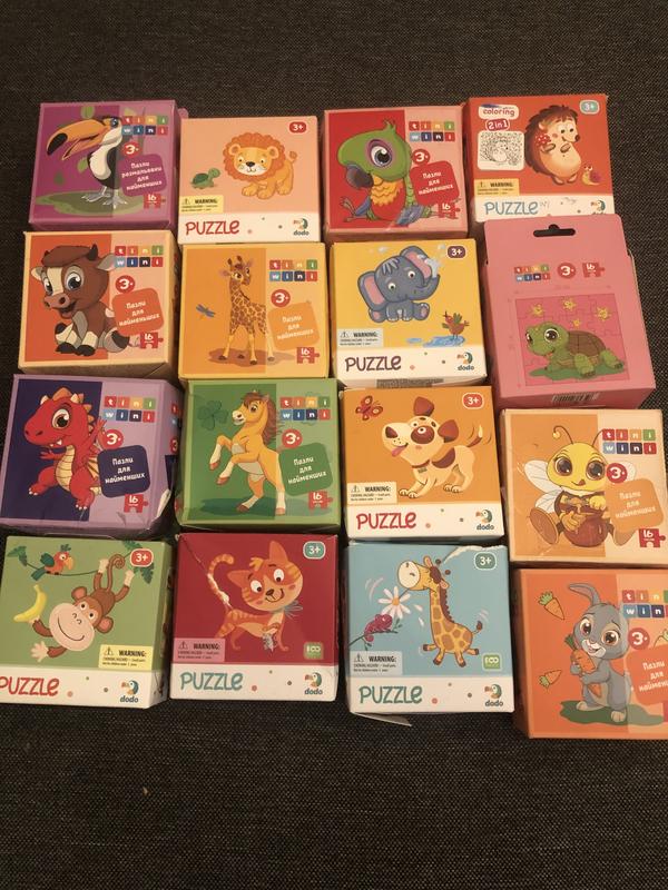 В хорошому стані, в наявності 16 коробок ( на 16 пазлів). Є деякі пошкодження. В подарок малі пазли 7 коробок. Можна частинами купити.