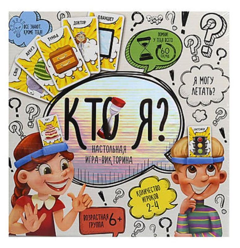 Настольная игра-викторина "Кто я?". Коробка новая. Закрыто плёнкой. Никто не открывал. Суть игры состоит в том, что каждому игроку выдается карточка с рисунком, который известен всем игрокам крому Вас. Задача игрока отгадать что нарисовано на картинки, задавая наводящие вопросы (можно ответить "да" или y "нет"). В наборе: 108 карточек с словами, 4 вспомогательных карточек с вопросами, 4 картонных обруча, песочные часы, фишки. Вес в упаковке: 360 г Габариты в упаковке: 29 x 5,5 x 29 см Габариты без упаковки: 29 x 5,5 x 29 см Cтрана производитель:Украина Материал: Картон Комплектация: 108 карточек с словами, 4 вспомогательных карточек с вопросами, 4 картонных обруча, песочные часы, фишки