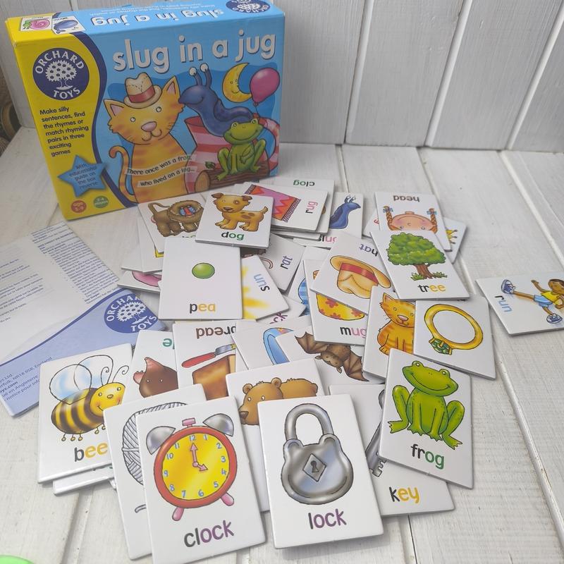 "Slug in a Jug" от Orchard Toys — это обучающая игра для детей от 5 до 9 лет, разработанная для развития навыков римирования и языка. Тип игры: Живая игра в католированые слова с тремя прогрессивными способами игры: "дурные предложения", "знай риму" и "римированные пары". Образовательная ценность: Помогает детям развивать навыки римирования, фонологическую осведомленность, а также может использоваться в качестве карт для изучения орфографии, звуков и фонетики. Содержание: Комплект включает 48 карточек с римированными изображениями и 1 инструкцию. Возраст и количество игроков: Предназначена для детей 5-9 лет, играть могут 2-4 игрока. Производство: Изготовлено в Великобритании.
