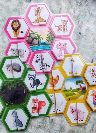 🐯Мої половинки🐵 🦁Вивчаємо свійських, лісових та тварин Африки; 🐯Знаходимо половинки картинок🐱 🐱Розвиваємо пам'ять, мислення, увагу, дрібну моторику. ❤До комплекту входить: 💚3 ігрових поля; 💚12 деталей на липучках. Ціна 160 грн🔥🔥🔥 Ел. варіант - 190 грн🌈