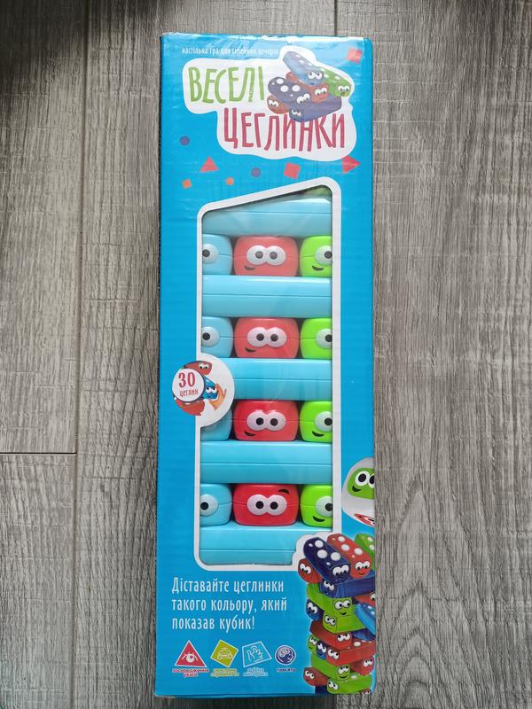 Настольная Игра Веселі цеглинки - это современная реплика, оригинальной настольной игры. Она изготовлена из высококачественной первичной пластмассы и обладает современным и уникальным дизайном. Каждый брусок выполнен в ярком и насыщенном цвете, а пара глаз привлекает и развлекает оригинальным внешним видом. Башня в сложенном виде прекрасно смотрится и приносит массу положительных эмоций. Ход игры решает ловкость и удача игроков, ведь в набор добавили специальный кубик, который и укажет, какой именно брусок необходимо вытащить из башни. Комплектация: - 30 брусков; - кубик.