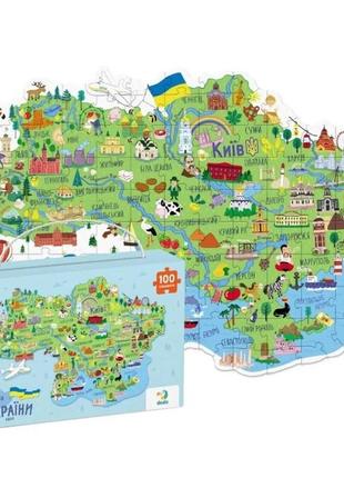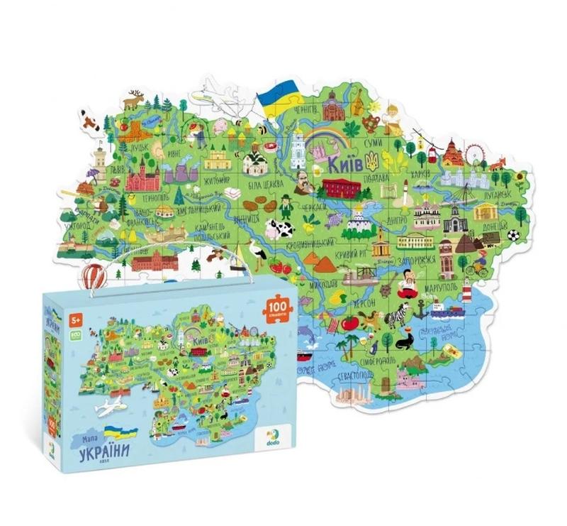 Яскраві пазли "Карта України" на 100 елементів. Поруч із назвами міст зображені символи, за які вони відомі. Розвивають логічне мислення, дрібну моторику рук, посидючість. Пазли великі та зручні, виготовлені з прочного картону і безпечних красок.. Розмір готової картинки: 45 х 64 см