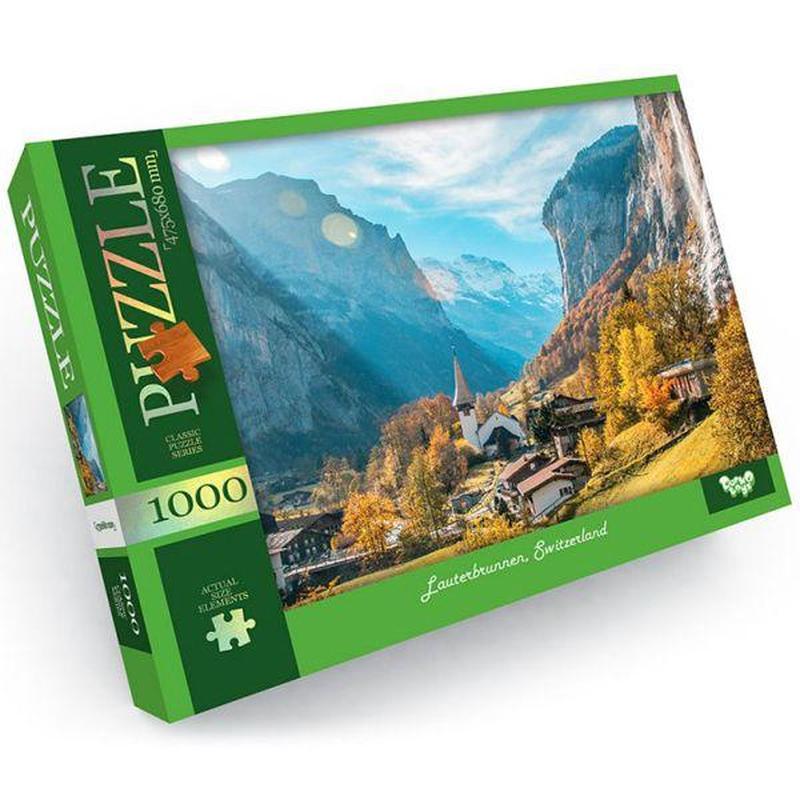 Яскраві барвисті пазли на 1000 елементів. Розмір зібраного пазла — 47.5 х 68 см. Розвивають логічне мислення, дрібну моторику рук, посидючість._ Бренд: Dankotoys Паковання: Коробка Колір: Різнобарвний Вага в упаковці: 530 г Габарити в упаковці: 5 x 39 x 29 см Габарити без упаковки: 47.5 x 68 см Страна виробник: Україна Матеріал: Картон Комплектація: 1000 елементів