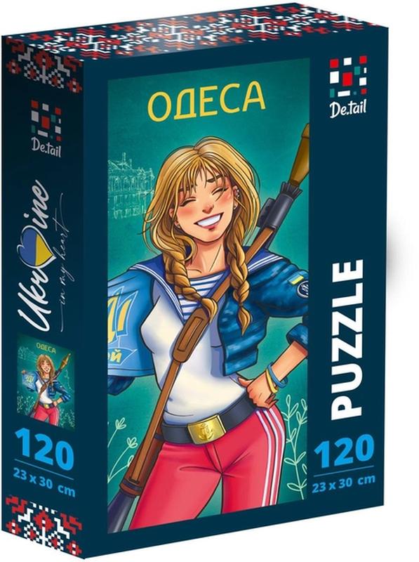 Патріотична картинка із зображенням образу міста-героя Одеси зачаровує своєю красою. Пориньте в цю історію самі, або розділіть час разом із рідними або друзями. Така головоломка сподобається кожному! У наборі є постер, який демонструє, який вигляд має мати готовий пазл. Готова картина гармонійно доповнить будь-який інтер'єр. Пазл підходить як для дорослих, так і дітей від 8 років. Розмір пазла: 23 х 30 см. Комплектація: 120 деталей пазла, постер.