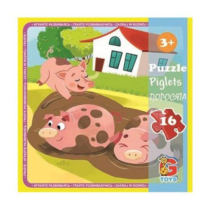 Пазлы "ферма", (свинки), 16 элементов