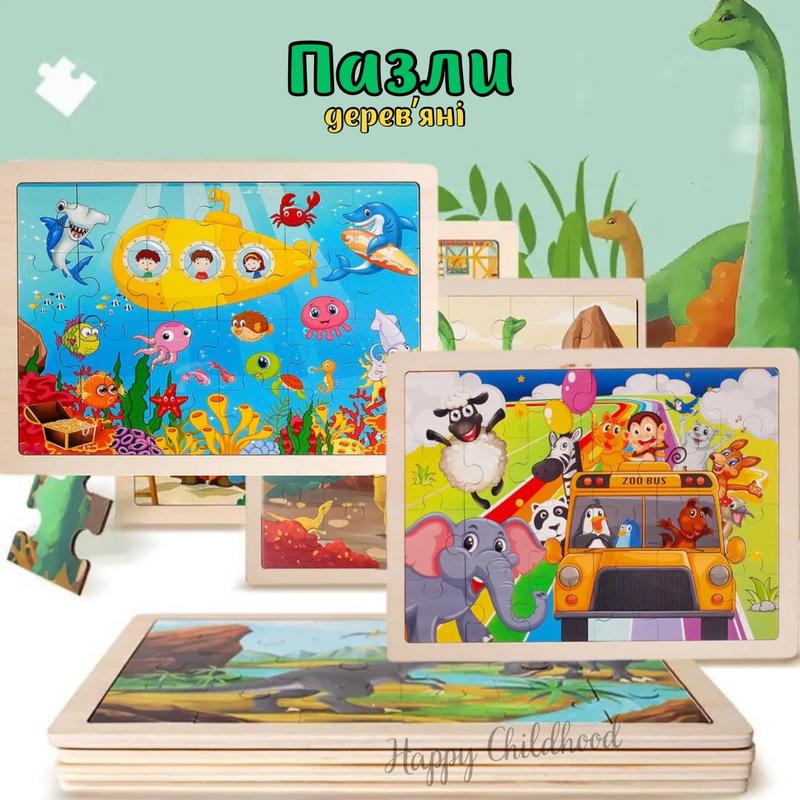 Яскраві, барвисті, дерев’яні пазли знаходяться на дошці. В ігровій формі розвиває у дітей логічне мислення, а також дрібну моторику. Комплектація: 24 великих елемента Розмір: 30х22х0,5 см.