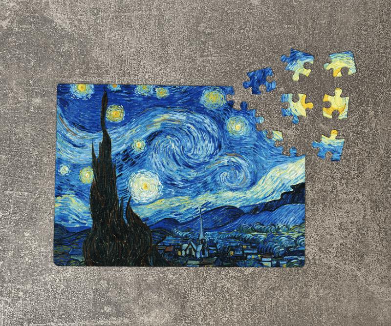 Пазл создан по сюжету картины Звездная ночь. Автор: Ван Гог