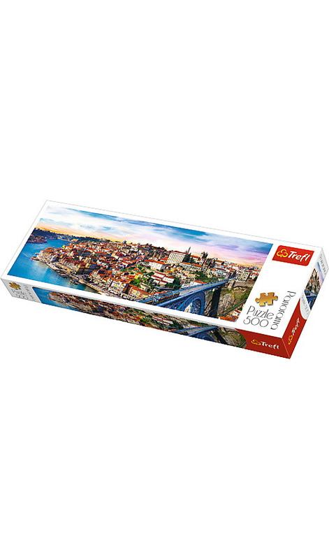 Панорамний пазл з 500 деталей, що зображає Порту Португалія. Після складання буде створена картинка розміром 660 х 237 мм. Виріб виготовлено з якісних матеріалів із застосуванням спеціального каландрового світловідбиваючого паперу, який полегшує складання. ]]>
